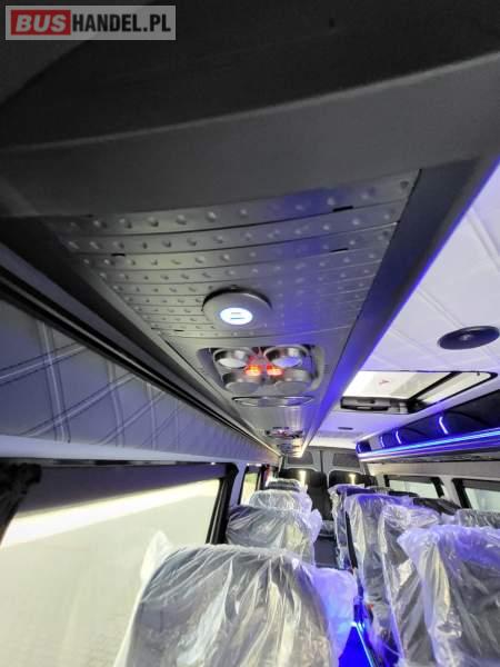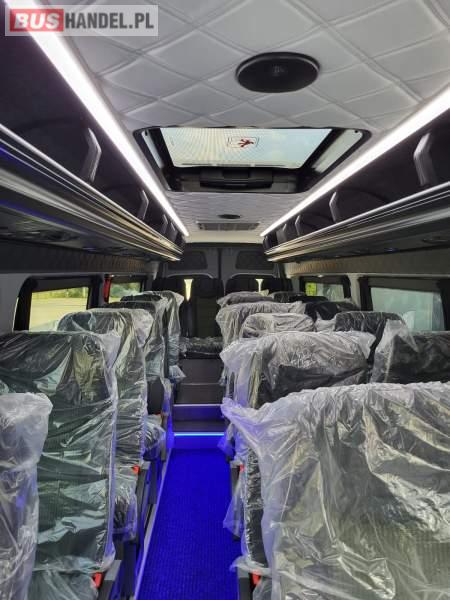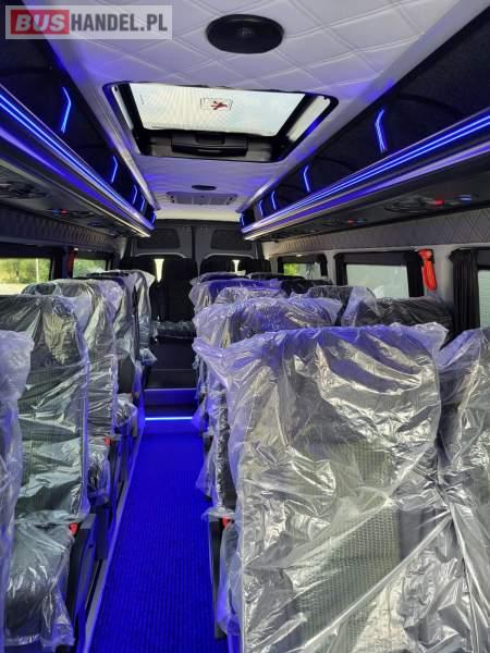 Numer pojazdu w ofercie: 49 NOWY ! Marka i model: Mercedes-Benz Sprinter 517 CDI LONG Rok produkcji: 2025 Skrzynia biegów: Manualna Pojemność silnika: 1950 cm3 Moc: 170 KM Stan licznika : 60 km Autobus w stanie IDEALNYM Nie eksploatowany w kraju. CENA: 349 000 zł + VAT Możliwość montażu automatu otwierania drzwi. Wyposażenie: - 24 miejsca siedzące + 4 stojące - fotel pilota - grzejniki - mikrofon - klimatyzacja dachowa - klimatyzacja przednia - fotele rozkładane z podłokietnikami i pasami bezpieczeństwa - podświetlane półki bagażowe z indywidualnym oświetleniem i nawiewami - tempomat - szyberdach - tachograf - radio - elektryczne szyby - przedłużany, duży bagażnik - kierownica wielofunkcyjna - hak Nasza firma wykonuje również zabudowy na autobusy od 16 do 24 miejsc + do 6 miejsc stojących na bazie fabrycznie nowego jak i używanego Mercedesa Sprintera. W zależności od potrzeb klienta możemy również montować w autobusach różne wyposażenie, od stolików, kanap do spania, po lodówki i inne dodatkowe wyposażenie. Sprzedający: